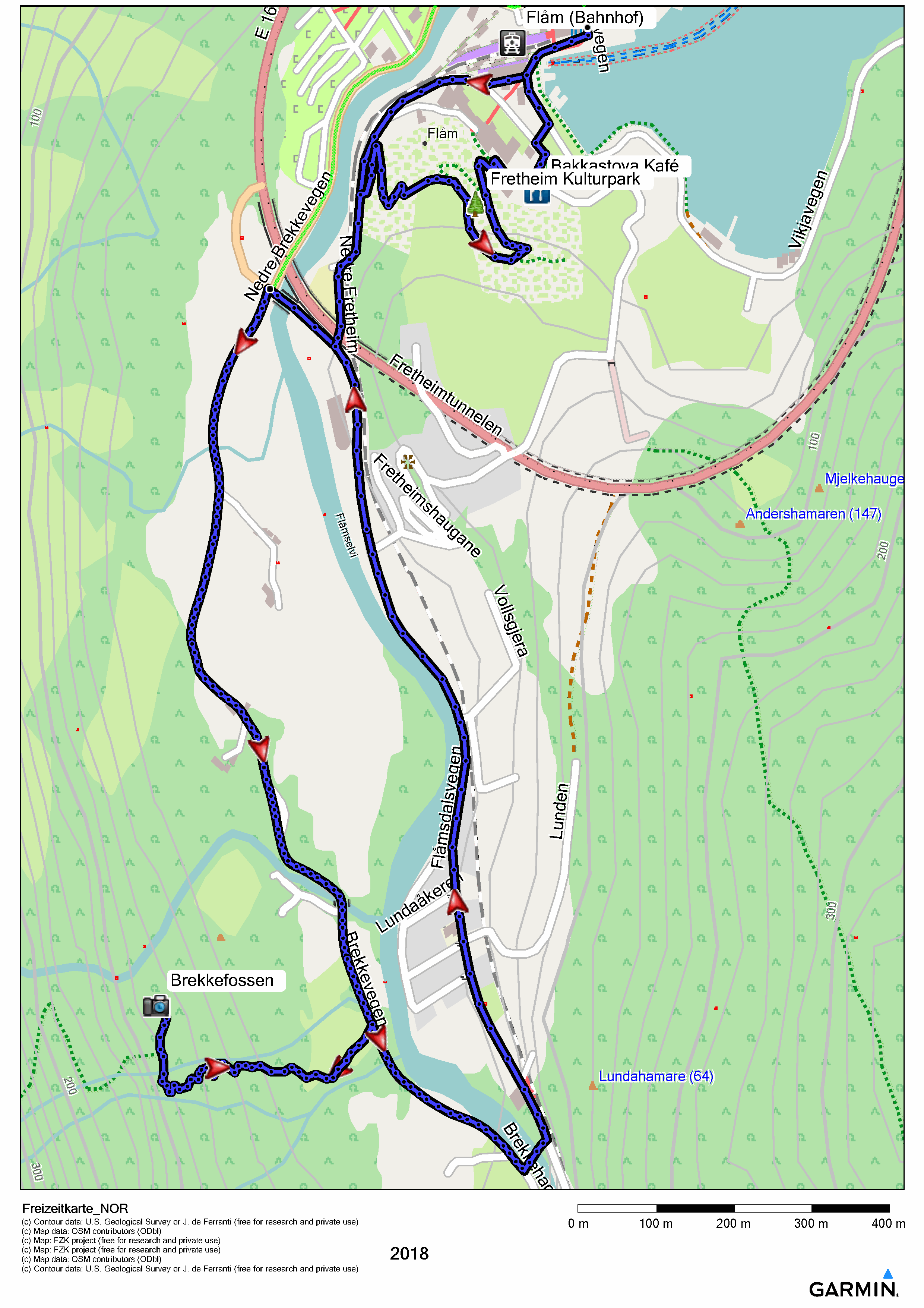 Hier ist noch eine offizielle "Walking Map" aus Flam, die auch die Tour zum Brekkefossen enthält: