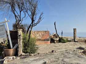 Erschreckend die Küstenstrasse wird gerade in stand gesetzt und auf der vom Meer abgewanderten Seite stehen noch die verbrannten Autos und Ruinen der Häuser