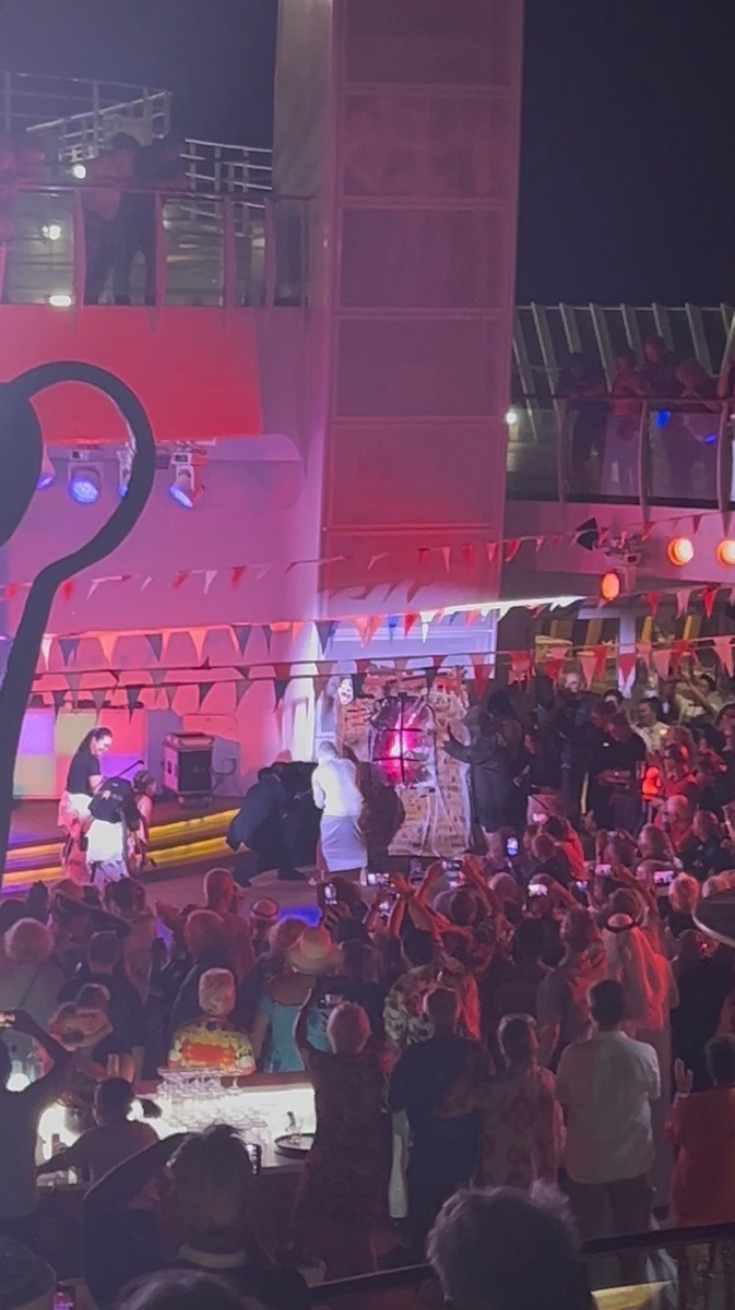 • Büttenrede & Jubel: Zwischen den Pointen gab es was zu feiern: Unsere Hoteldirektorin beging ihr 15-jähriges AIDA-Jubiläum. Hut ab! Wer es so lange mit uns Verrückten aushält, verdient eigentlich einen Orden aus purem Gold (oder zumindest einen lebenslangen Vorrat an Cocktails).