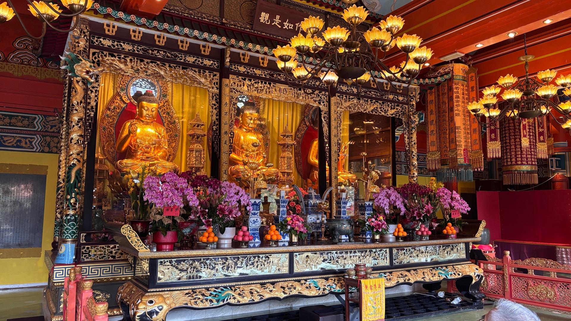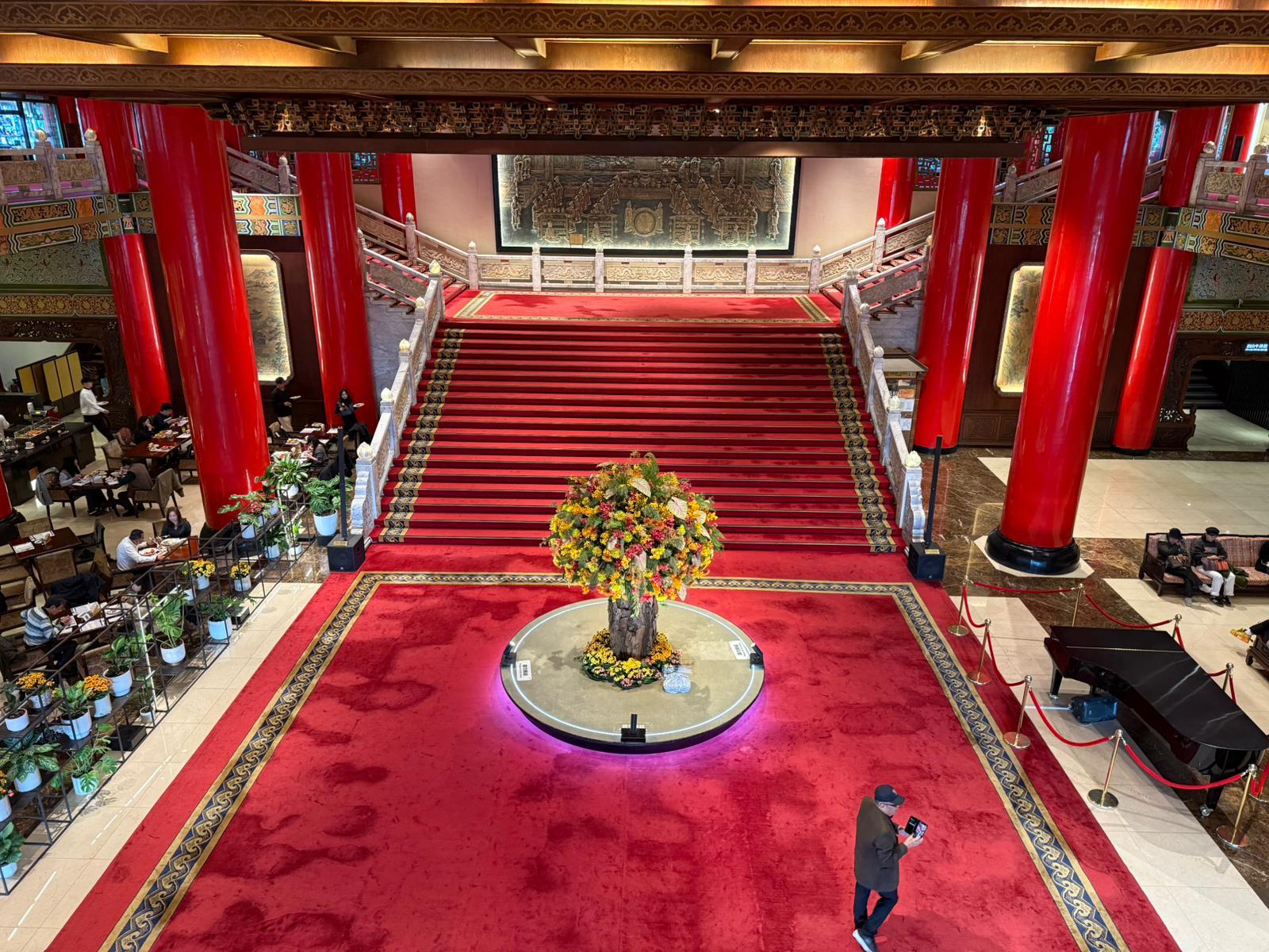 Hier oben waren durch die Zusatz Kosten nur wenige Leute. Der Rundgang war gesäumt von echten und teilweise künstlichen Blumen. Nun in den Keller in einen riesengroßen Food curt. Zurück zum Schiff wo uns das Regenwetter wieder erwartete. Ein gelungener Ausflug