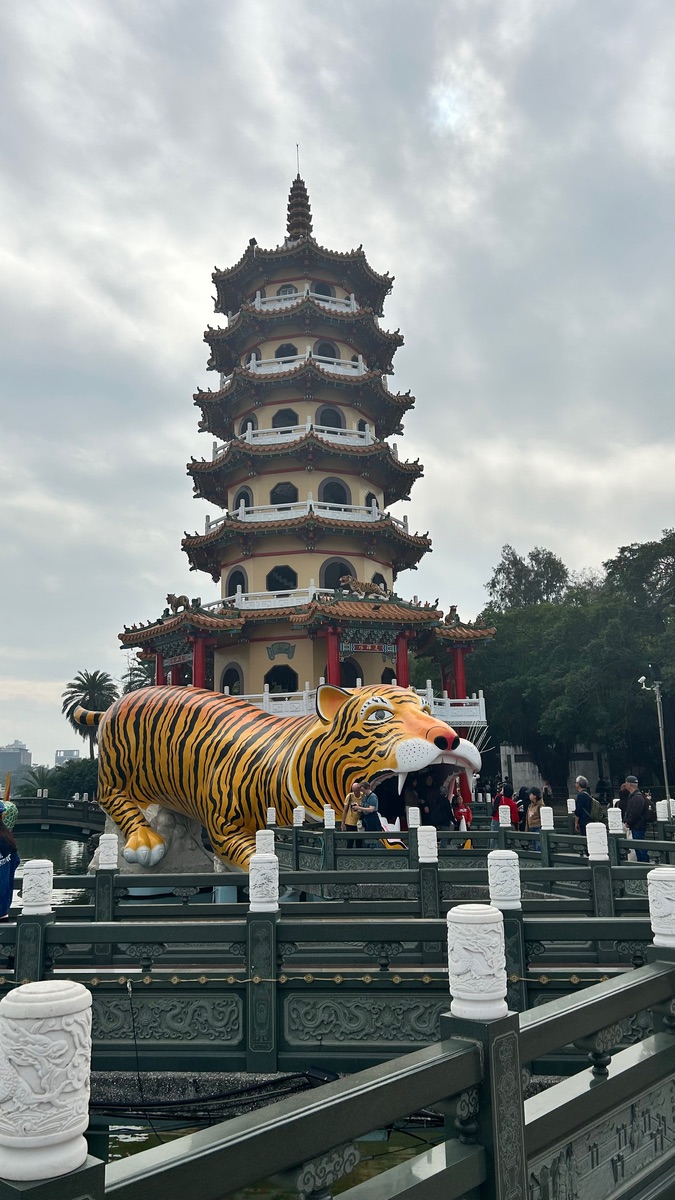 Heute haben wir nur einen kurzen Ausflug zum Lotus 🪷 Teich gemacht. Auf der einen Seite Die Drachen- und Tiger-Pagoden am Lotus Pond in Kaohsiung,und im Hintergrund eine wakebword Anlage