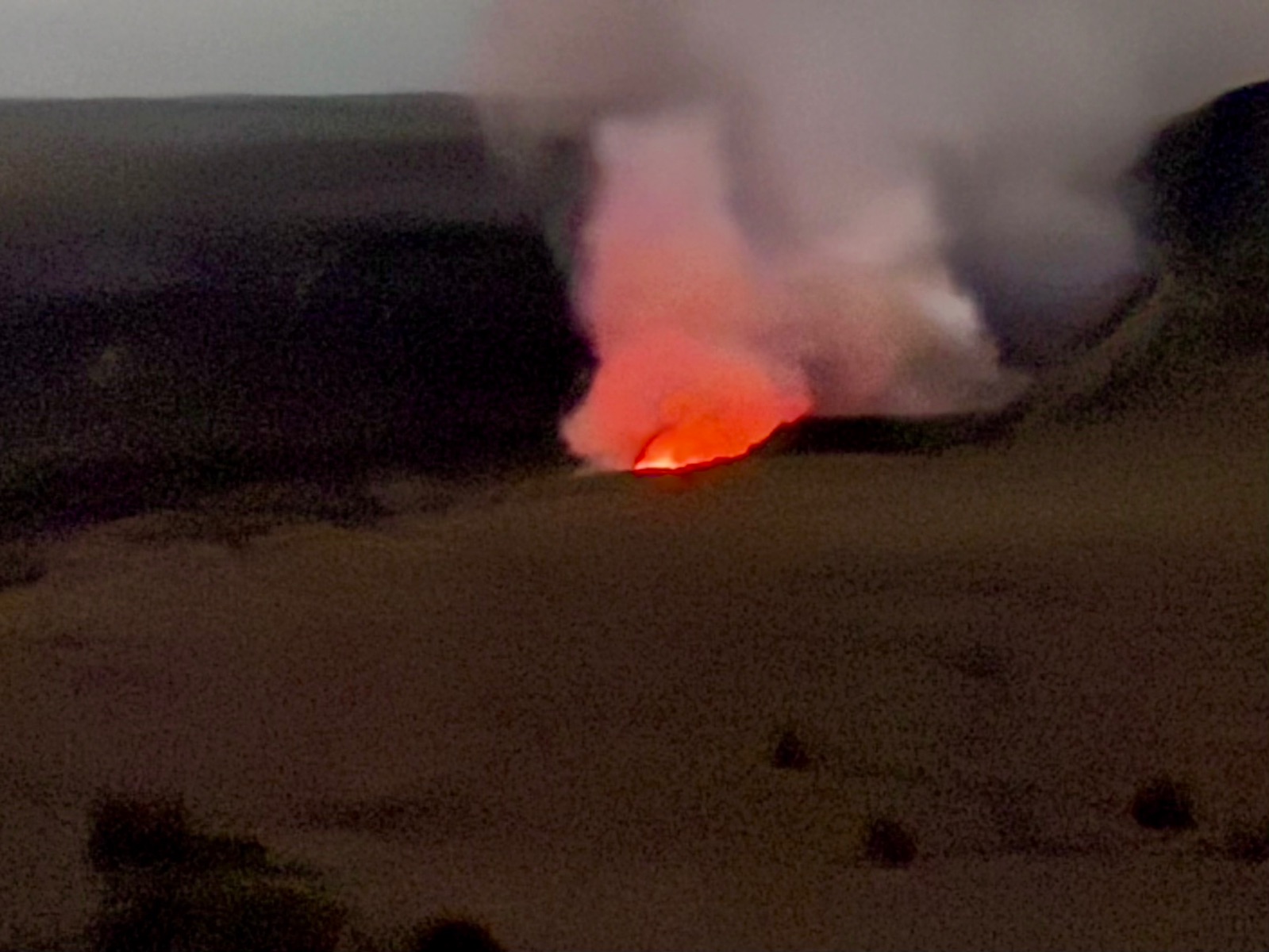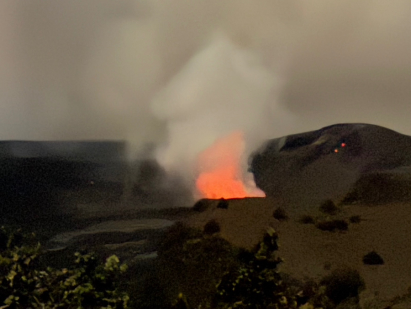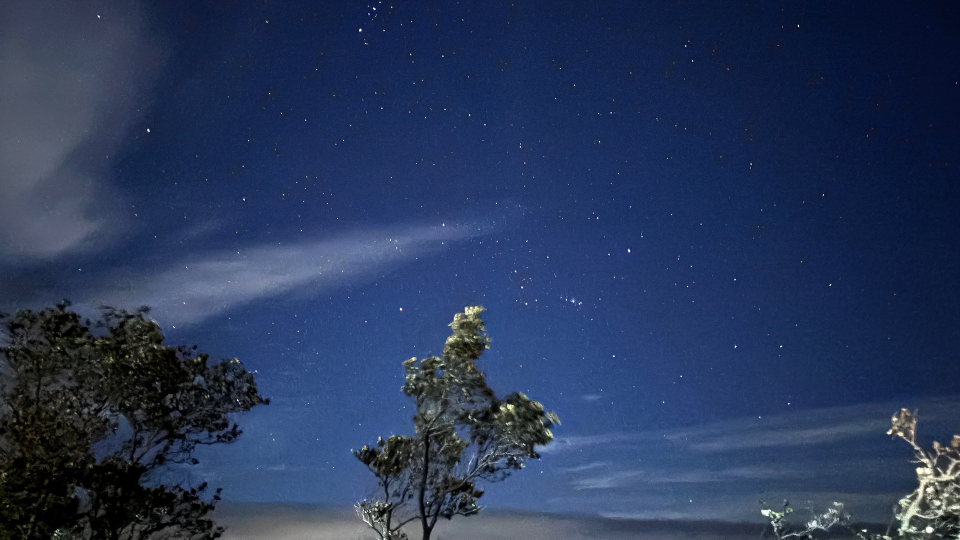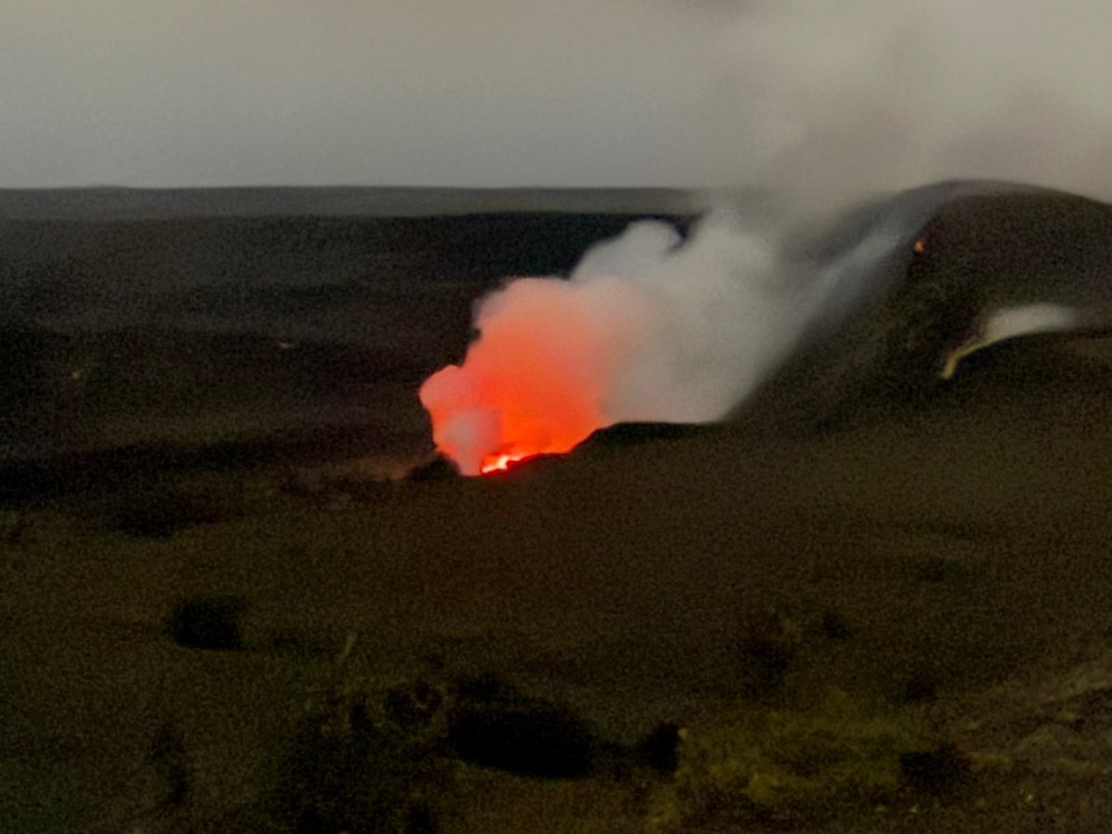 Draußen belohnte uns der Kīlauea dann mit einem Anblick für die Götter: Ein glühender Vulkan unter einem Sternenhimmel, der so kitschig schön war, dass man ihn fast für eine Fototapete halten konnte.