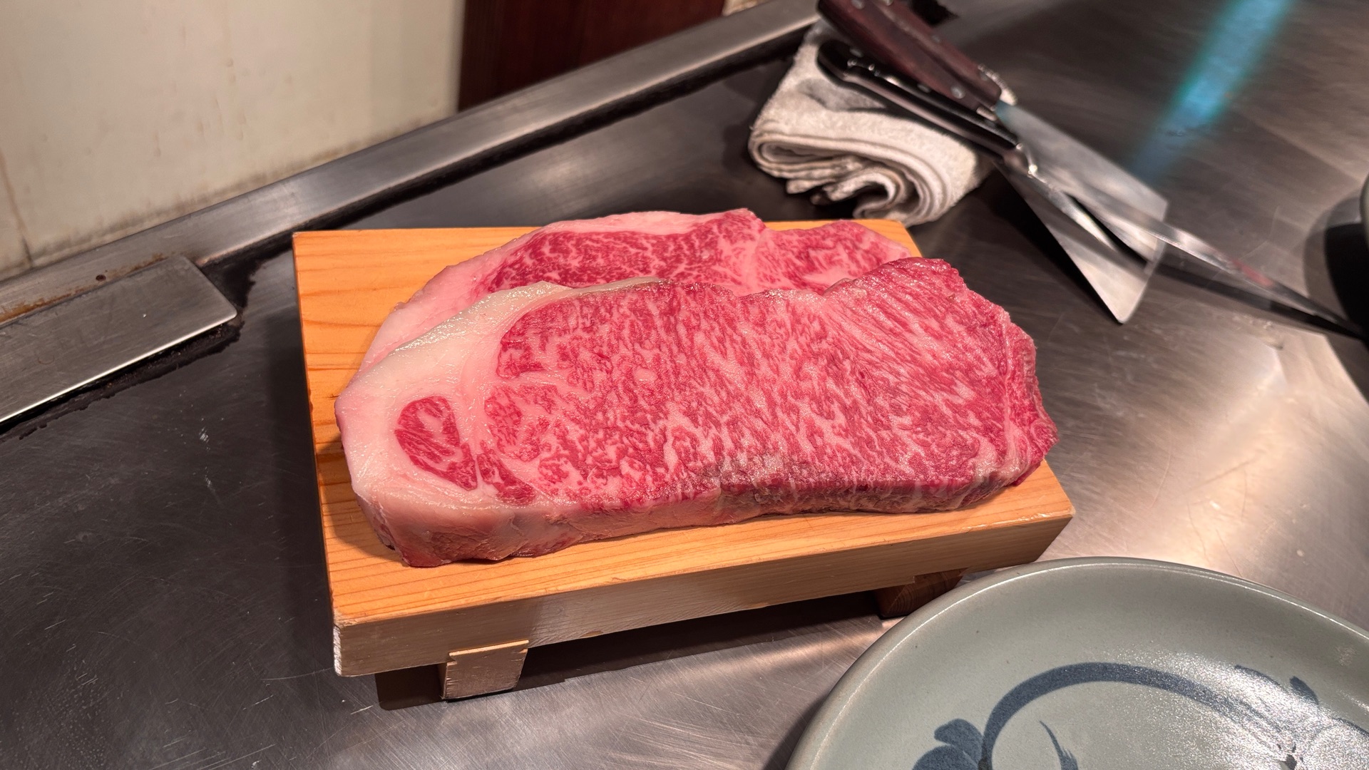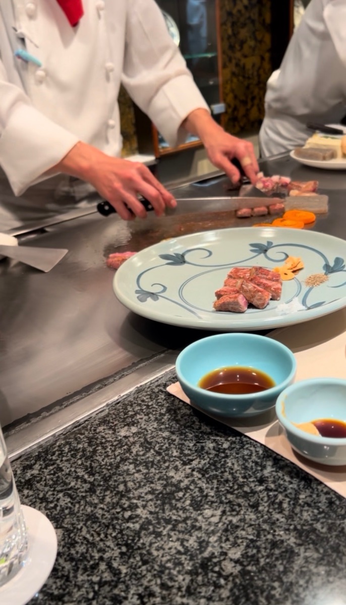 Unsere Reise führte uns zunächst tief in die Kultur und Kulinarik Japans. Den Anfang machten wir mit dem kostenlosen Shuttle der Stadtverwaltung, der uns direkt ins chinesische Viertel brachte. Nach einem ersten Eintauchen in das bunte Treiben stand ein absolutes Highlight auf dem Plan: Kobe-Steak. Das Essen war weit mehr als nur eine Mahlzeit – es war eine wahre Zeremonie. Direkt vor unseren Augen wurde das Fleisch zelebriert, wobei uns bei jedem einzelnen Bissen genau erklärt wurde, wie wir ihn zu würzen und zu genießen hatten. Ein unvergessliches Geschmackserlebnis! Wir zahlen für 220 Gramm 90,00 €