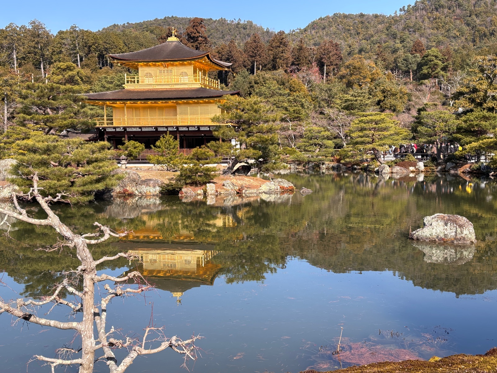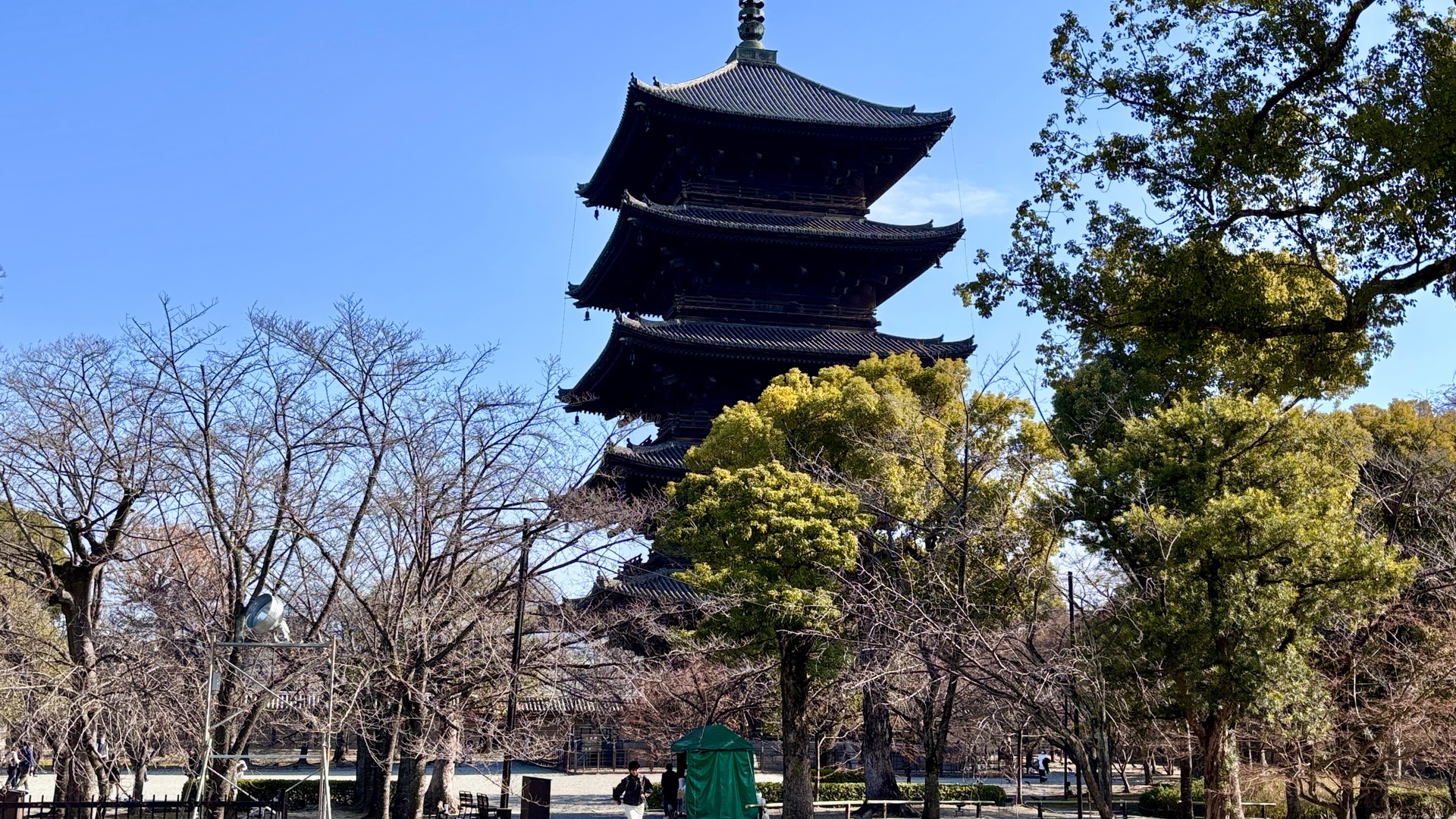 Am nächsten Tag setzten wir unsere Reise mit dem Shinkansen fort. Dank der Online-Buchung verlief alles reibungslos, und in gerade einmal 20 Minuten erreichten wir Kyoto. Unser erster Stopp war der beeindruckende Goldene Tempel (Kinkaku-ji). Als Zen-buddhistischer Tempel, dessen obere zwei Stockwerke vollständig mit Blattgold überzogen sind, bot er einen majestätischen Anblick. Es ist kaum verwunderlich, dass diese Anlage zum UNESCO-Weltkulturerbe zählt und zu den meistbesuchten Sehenswürdigkeiten Japans gehört. Ein weiteres kulturelles Juwel war der Tō-ji, der Haupttempel der Shingon-Schule des Buddhismus. Auch dieser gehört zum Weltkulturerbe und beherbergt in seinen Hallen zahlreiche Nationalschätze sowie wertvolle buddhistische Statuen, die eine tiefe Ruhe ausstrahlen.