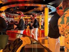 Nachdem gestern Abend in der Almhütte noch die Saison der Jecken eröffnet wurde,hier aber Bilder vom Vormittag schipperten wir bei leichtem Wellengang unserem Ziel entgegen. Gestern Abend waren wir zum Essen im French Kiss. Bitte hier jetzt keine Diskussionen über Sinn oder Unsinn des Umbaus. Das Essen und der Service sind sehr gut. Wir konnten in Ruhe und gemütlich essen. Danach sind wir noch in die Panorama-Bar gegangen. Dieser Bereich gefällt uns sehr, sehr gut, wobei hier die Getränkekarte etwas eingeschränkt ist, was offensichtlich der Größe geschuldet ist.