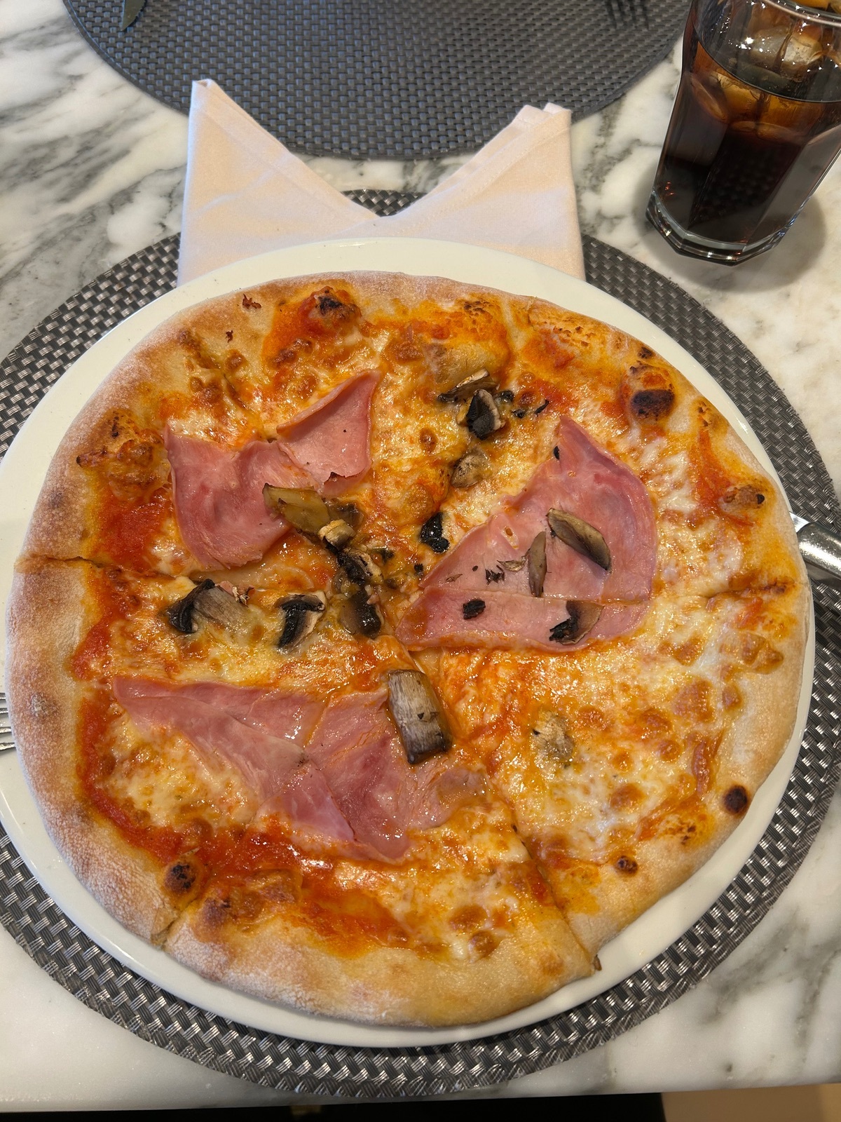 Jetzt sind die Batterien wieder aufzuladen: Das erledigen wir ganz traditionell amerikanisch mit einer Pizza "Doppel Käse" und eiskalter Coke. So schmeckt der Ankerplatz! 🍕🥤