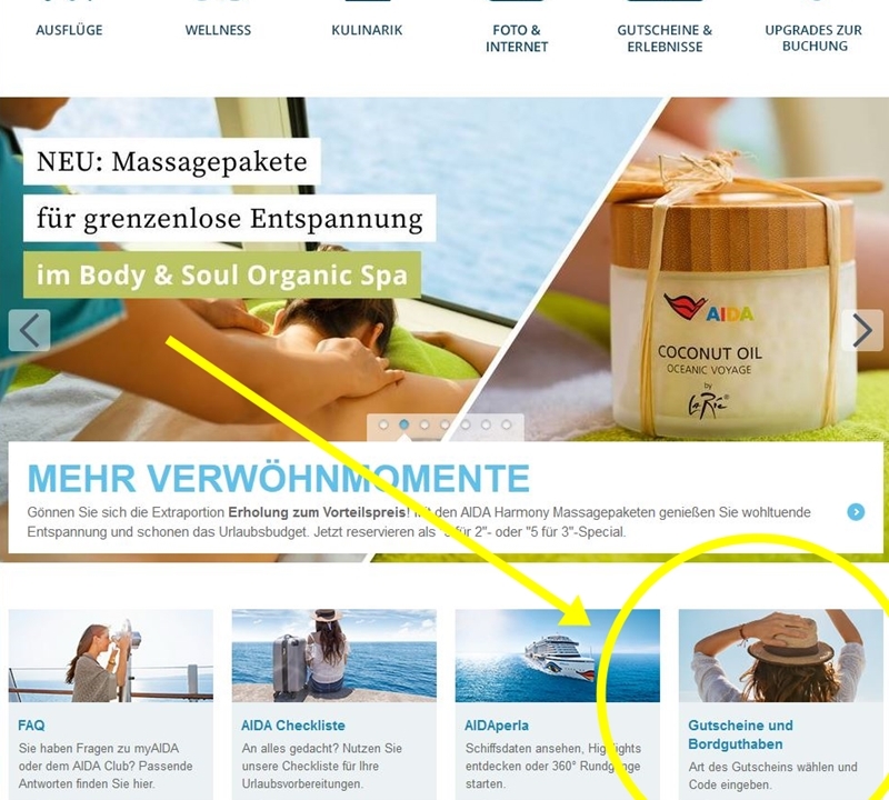 2. Etwas runterscrollen, auf "Gutscheine und Bordguthaben" klicken