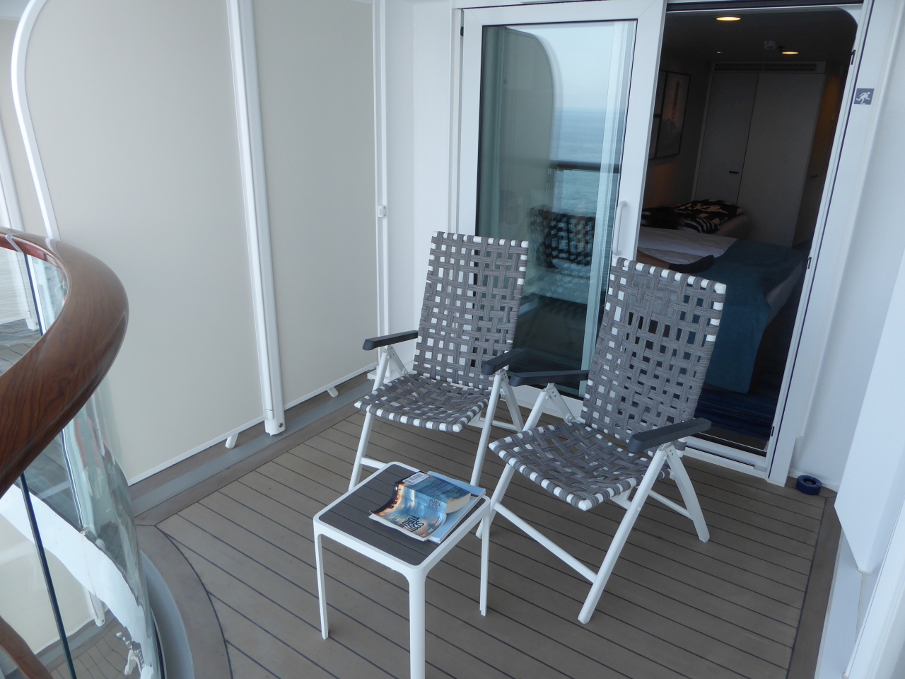 Auf meiner Mittelamerika-Kreuzfahrt im Februar 2020 (youtu.be/nMmmZk4FTVo) hatte ich am letzten Tag noch eine Tageskabine, und zwar die 11053. Grundsätzlich handelt es sich auch hier um eine ganz normale Balkonkabine, allerdings mit Verbindungstür. Ich würde sie aber nicht gezielt buchen, wenn ich wählen könnte, weil sie auf Deck 11 zwei entscheidende Nachteile hat: Da sie direkt unter dem Pooldeck ist, gibt es von dort möglicherweise Ruhestörung durch herumgeschobene Liegestühle (wobei ich persönlich nichts gehört habe, da ich ja nur unter Tag und wenige Stunden an einem An- und Abreisetag mit wenig Gästen an Bord in dieser Kabine war), aber - für mich subjektiv weitaus gravierender - ist sie damit auch direkt unter einem doch sehr ausladenden "Vordach", noch dazu mit Stützstreben (siehe Fotos), was die Sicht meines Erachtens etwas trübt (andererseits aber natürlich auch Schatten spendet bzw Sonne nimmt, je nachdem). Bei Durchsagen etc wird man zudem auch "bevorzugt", weil ein Lautsprecher direkt am Balkon hängt