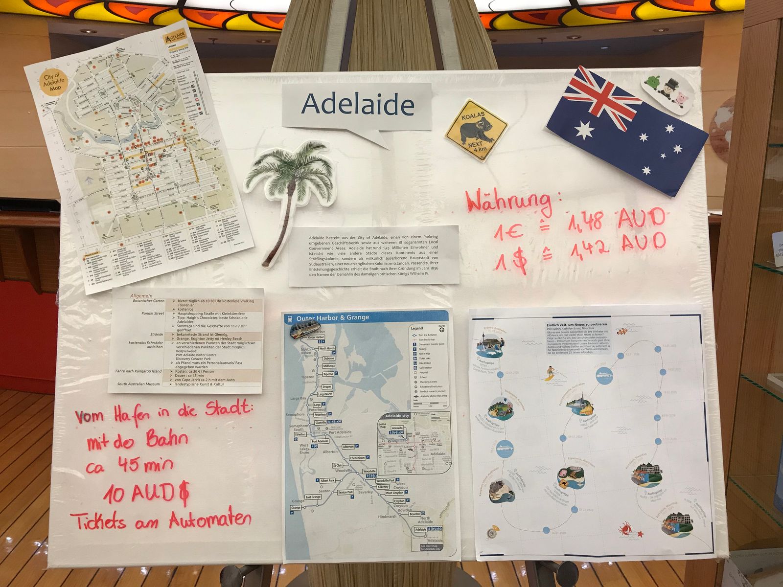 Jeden Abend vor einem erneuten Hafenanlauf war an der Rezeption ein Aufsteller, wo man sich noch weitere Infos holen konnte.
