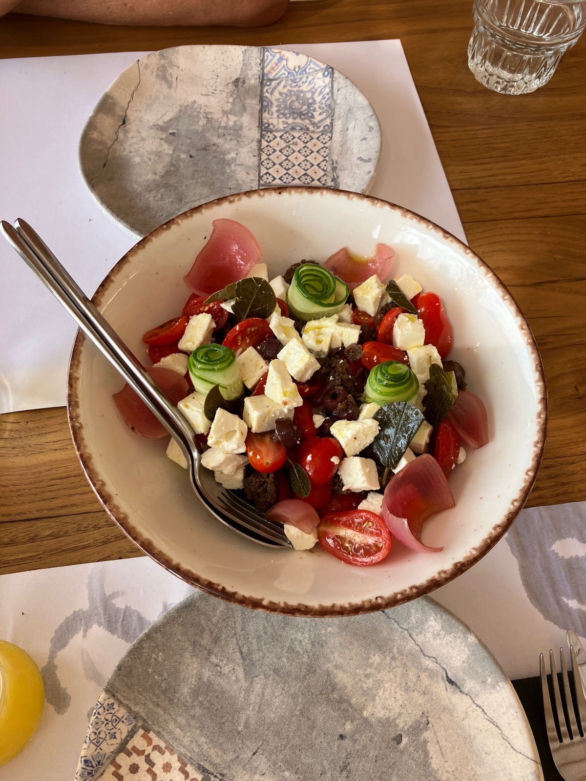 Anschließend sind wir zurück nach Katakolon und hier noch in einem Restaurant zum Essen und Baden gegangen.