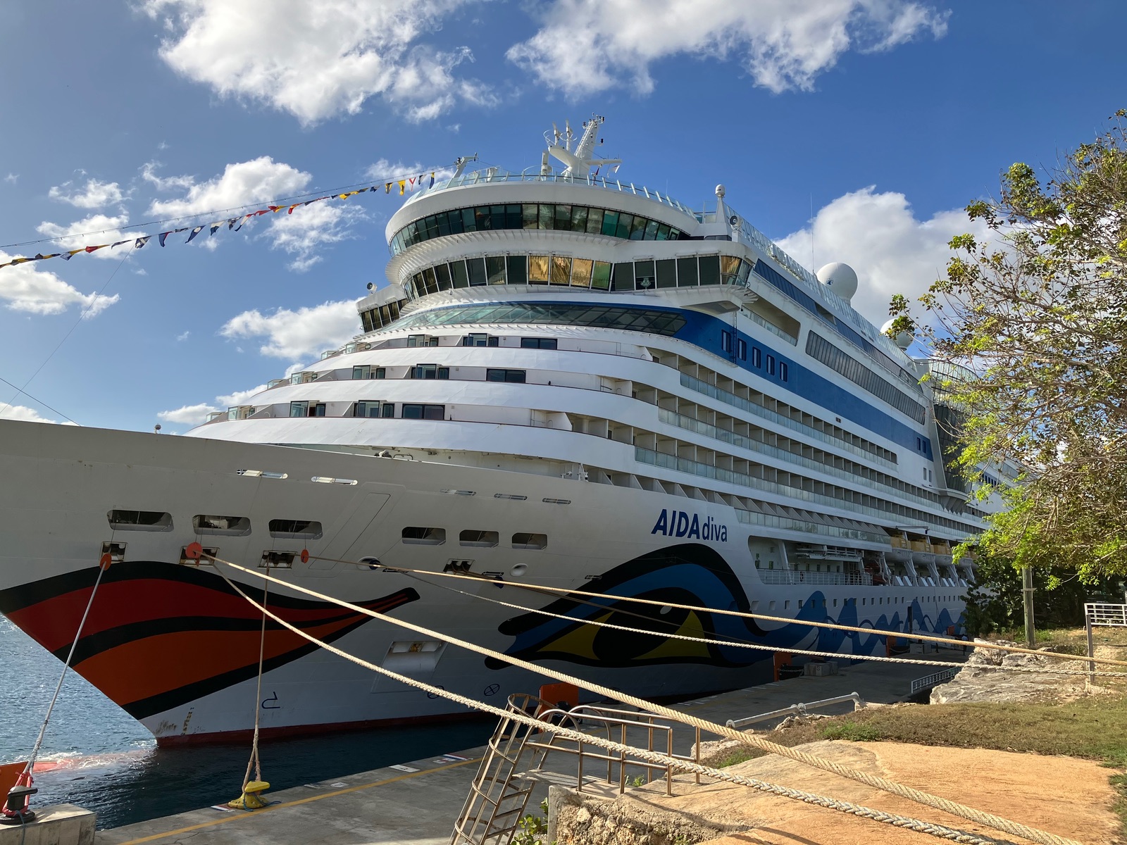 Neben uns liegen die P&O Britannica und die Marella Voyager, außerdem sind noch die Viking Sea da und die Norwegian Viva, die uns von Tortola aus vorausgefahren ist.