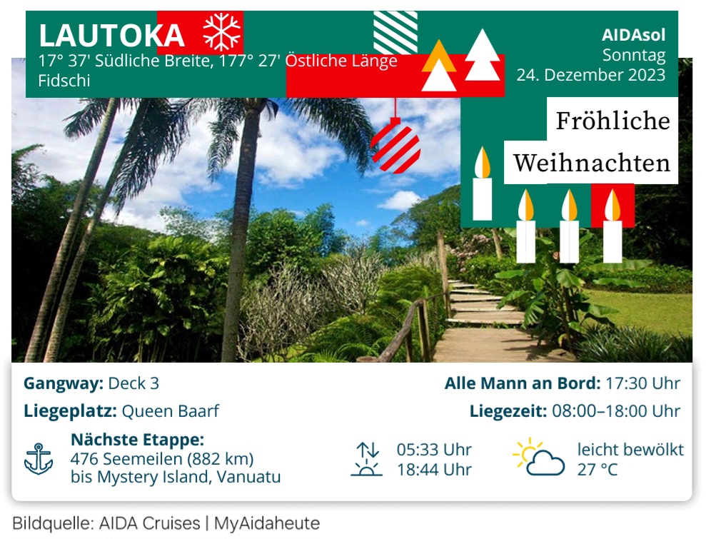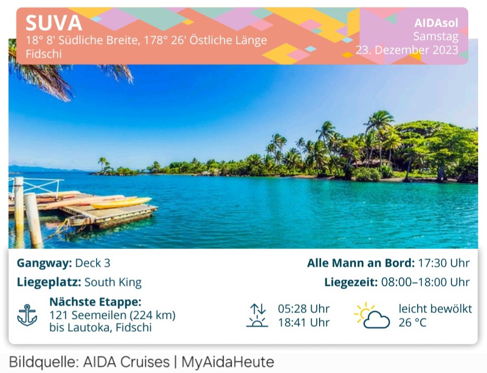 Bordzeit: 27.12.2023 17:45 UTC+11 (Differenz: +10 nach Deutschland)