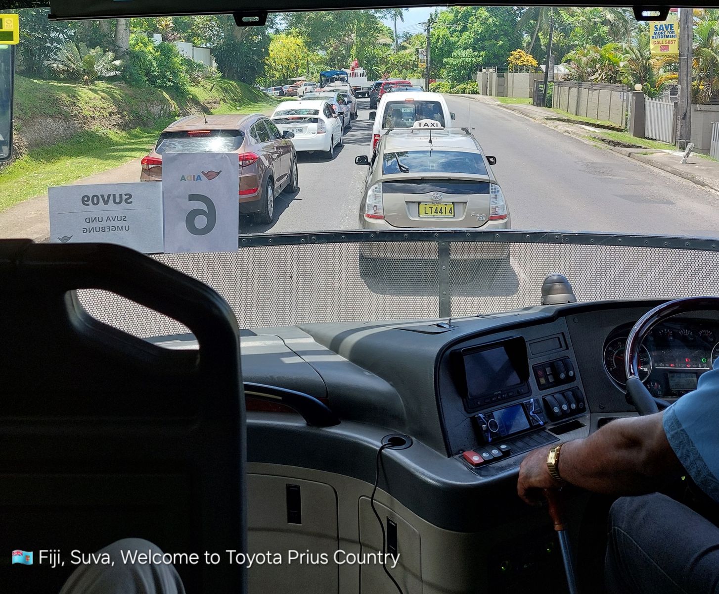 So ging es kurz nach 9 Uhr zum Tender und geschmeidig kamen wir die kurze Strecke an Land. Hier wartete bereits ein Schulbus (!!!) auf uns. Nachdem wir uns in die wirklich sehr enge Bestuhlung geklemmt hatten, ging es auch schon los. Unser Ziel lag an der gegenüber liegenden Küste.