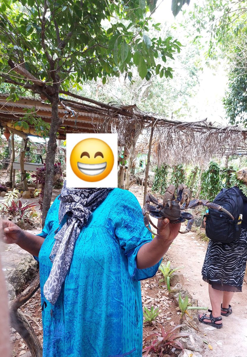 Nach einer kurzen Begrüßung erhielten wir eine kleine Führung durch den "Tiergarten" von Schweinen über Flughunde zur Schlange und freilebenden Coconut Crab oder Palmendieb - die größten Landkrabben der Erde.