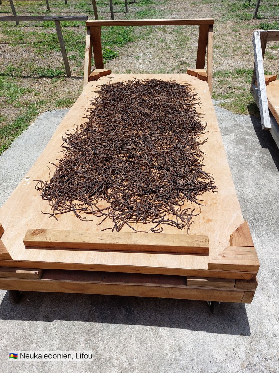 Die Vanilleschoten werden im Juni/Juli ca. 9 Monate nach der Blüte geerntet und ca. 2 Monate in der Sonne und weitere 4 Monate im Schatten auf luftdurchlässigen Gittern getrocknet und kommen anschließend in große Kisten, wo sie weitere ca. 6 Monate reifen, bevor sie in alle Welt verschickt wird.