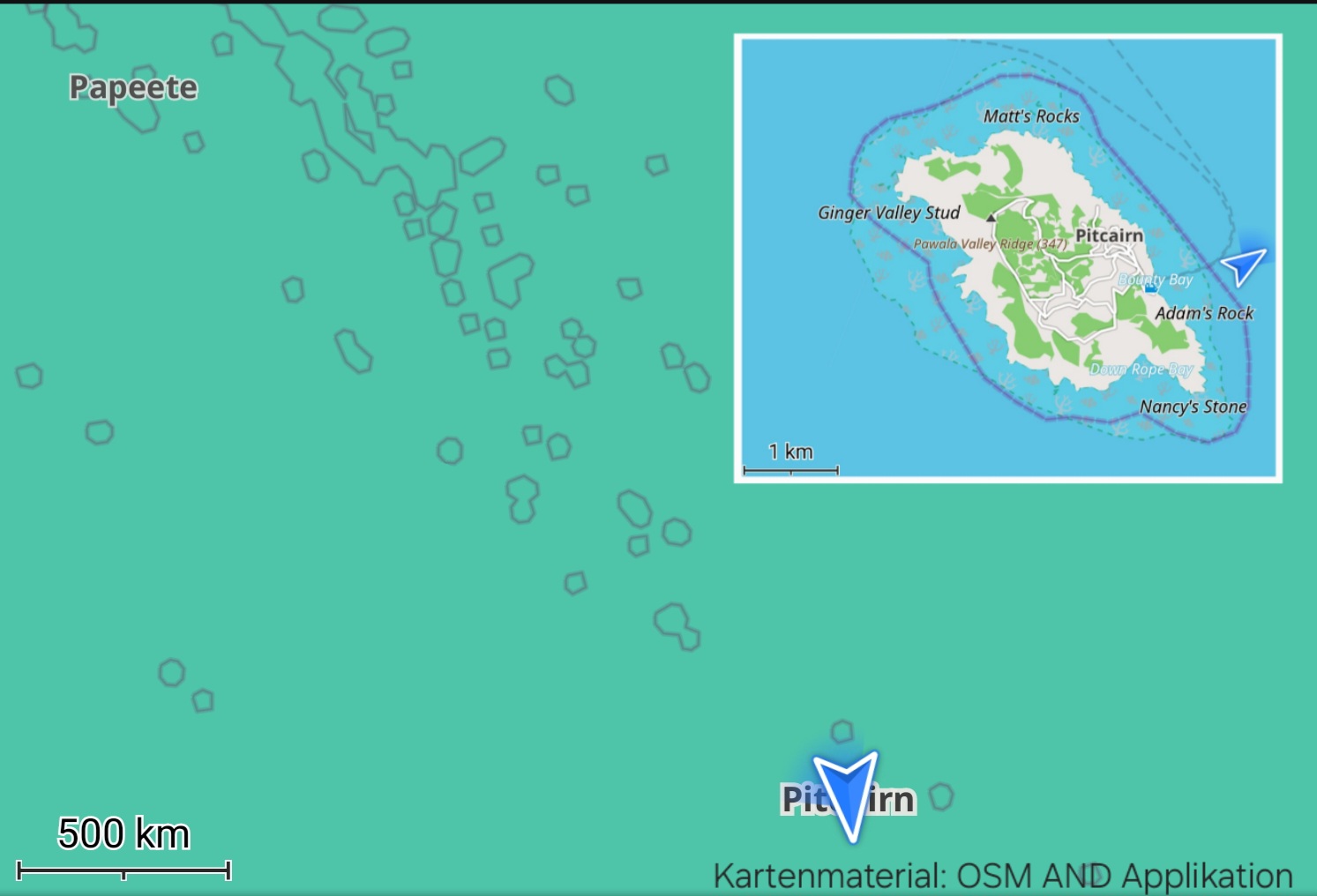 Anschließend kehrten sie wieder zur Insel Pitcairn zurück und wir setzen unsere Fahrt fort.