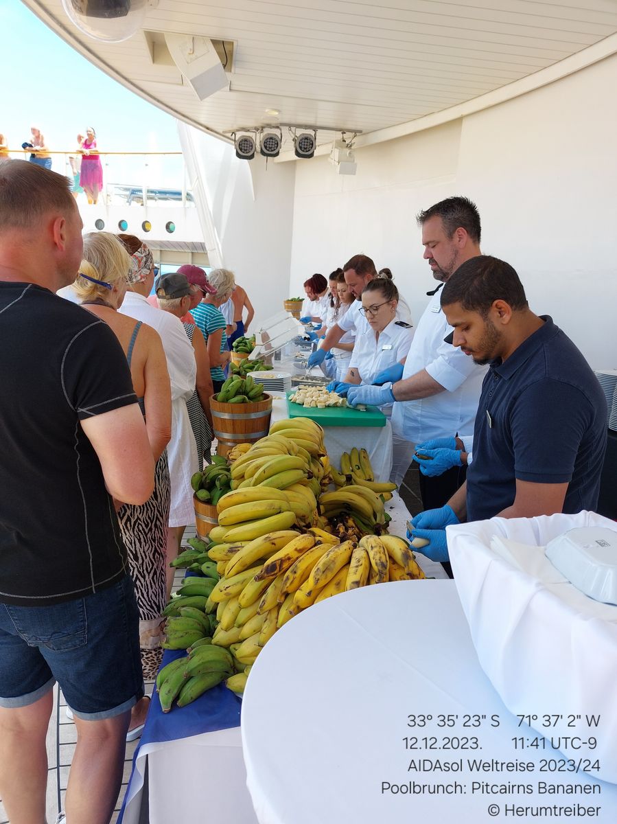 Warum der Markt neben dem späteren Poolbrunch (mit Thema Bratwurst) in der prallen Sonne und nicht z.B. auf den Rettungsdeck veranstaltet wird...🤷🏽♂️