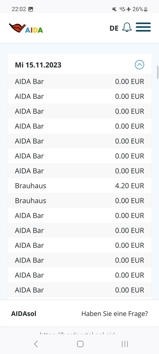 Im übrigen ist im AI paket heiße Schokolade mit Bailys nicht inkludiert.... Auf jeden Fall im Dezember auf der Nova nicht.