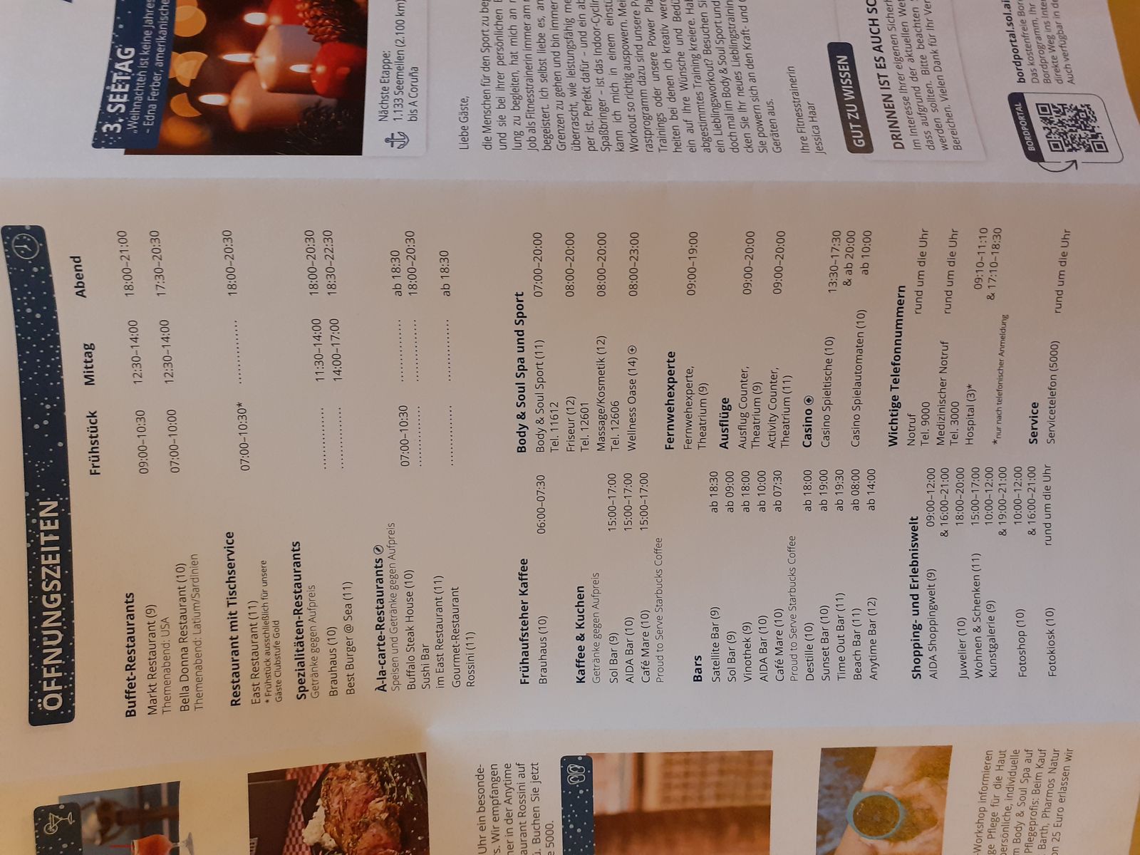 Hallo Eva, wir fahren aufgrund des Sturms langsamer. Liebe Grüße aus dem Marktrestaurant. Das Essen ist fantastisch! Freut euch, besonders auf Rhonny, ein 47jähriger Philippine, der uns mit seinem Team hier verwöhnt. Noch kurz zur Sauna, es gibt diese 15 und 25 Euro Tarife für 4 Std. Inklusive Wellnesoase, in der heute der Whirlpool wegen dem starken Seegang gesperrt war. Morgens von 8-9 Uhr gibt es für die Sauna einen Kurzzeittarif für 5 Euro. Liebe Grüße Thomas, der Schachspieler, der heute auch endlich ein paar Gegner gefunden hat.😀