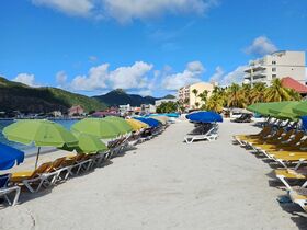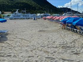 nitope In Tortola der Strand Cane Garden. Da stehen direkt am Hafen private Anbieter mit ihren offenen Bussen. St Maarten kommt heute erst, dort ist der Strand zu Fuß ca 1 km entfernt. Oder kostenpflichtig per Wassertaxi.