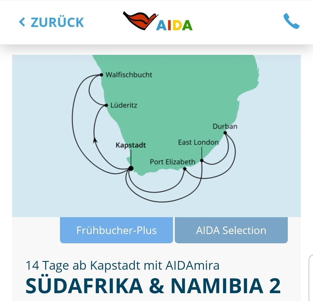 Ich muss leider unsere Balkonkabine (1132) fuer die Reise mit der AIDAMira Suedafrika & Namibia 2 verkaufen. Es gibt insgesamt nur 12 Balkonkabinen und die sind bereits ausgebucht!!