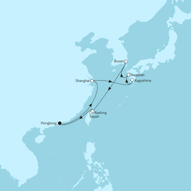 Shanghai - Kagoshima - Nagasaki - Busan - Keelung (Taiwan) - Hongkong.