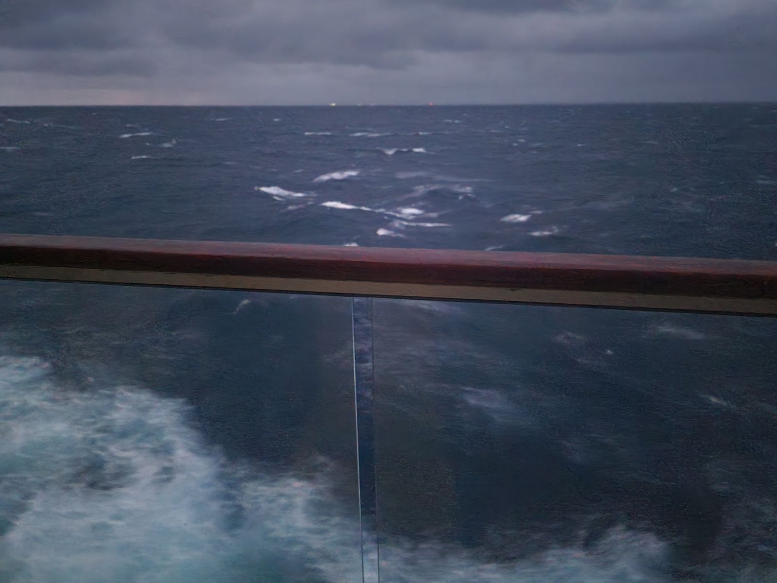 Die See ist heute sehr unruhig, auch wenn der Himmel nicht so bewölkt ist wie gestern. Bei solchen Fahrten muss ich immer an die berühmten Seefahrer denken, Kolumbus, Magellan, Marco Polo und wie sie alle hiessen.