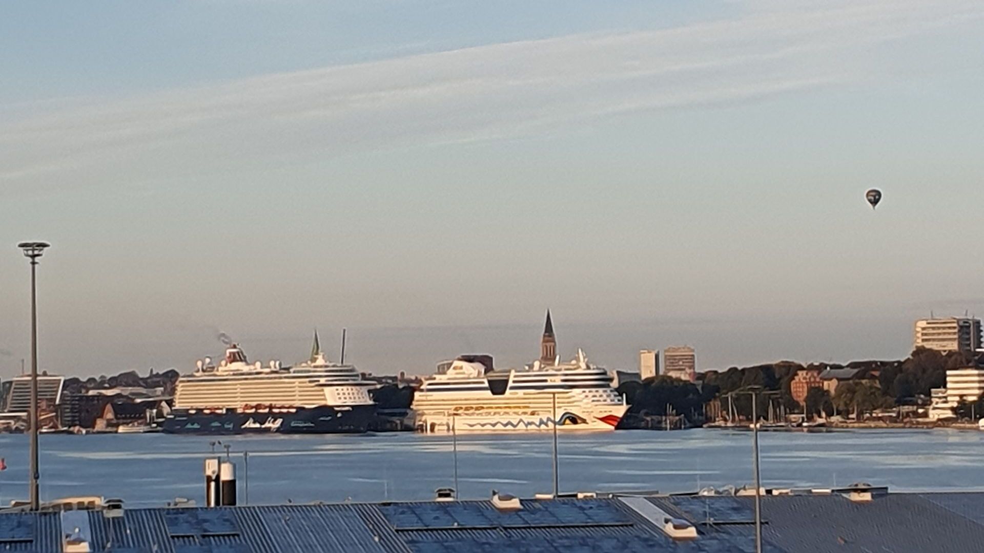 Man sieht Mein Schiff und Luna in Kiel am 15.9.24. Von unserem Anleger aus auf der Aida Bella.