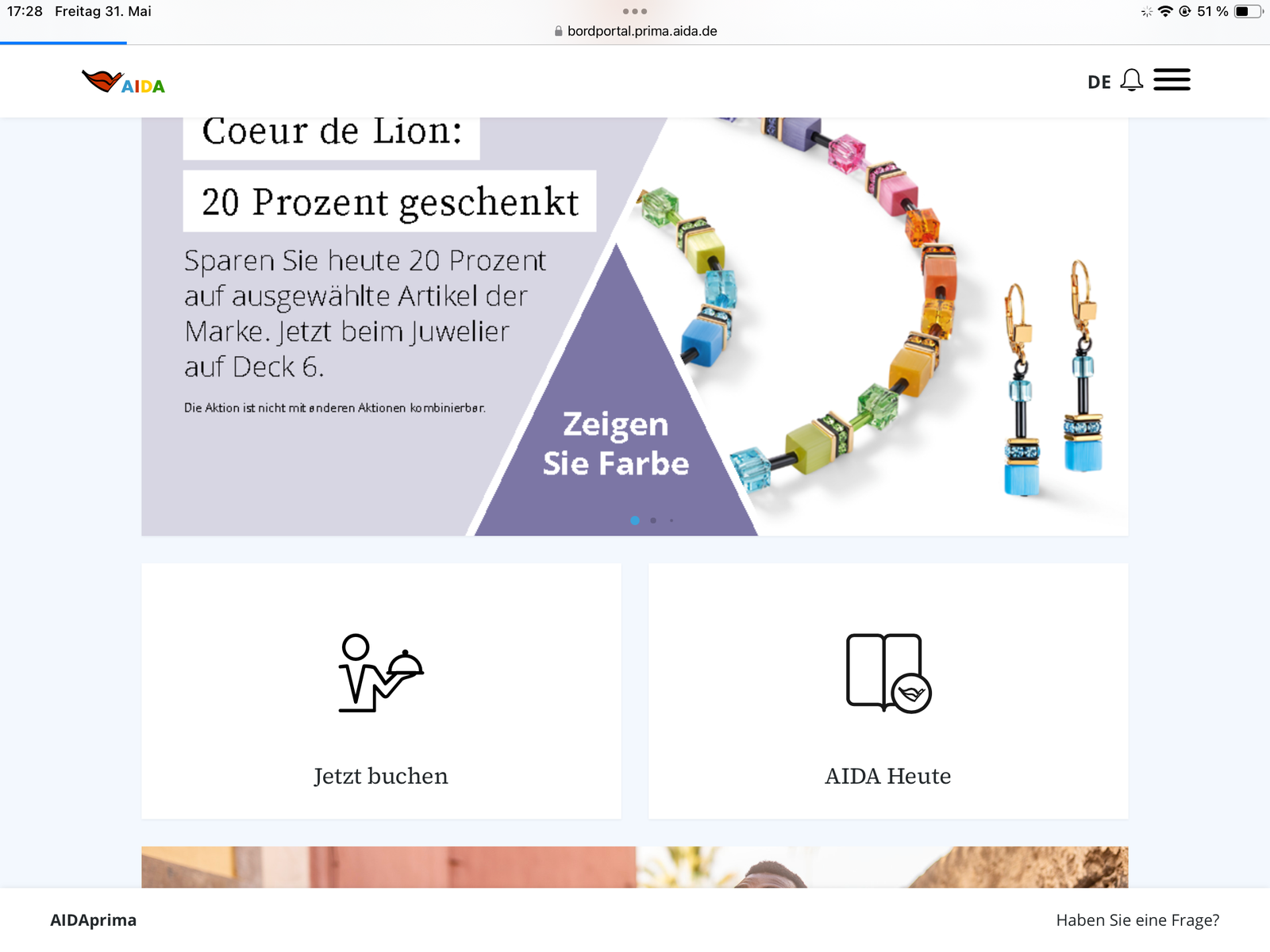 AIDAheute als pdf im Download Bereich verfügbar, und jetzt auch gleich im Bordportal ganz oben auf der Seite als Kachel zum Anklicken.