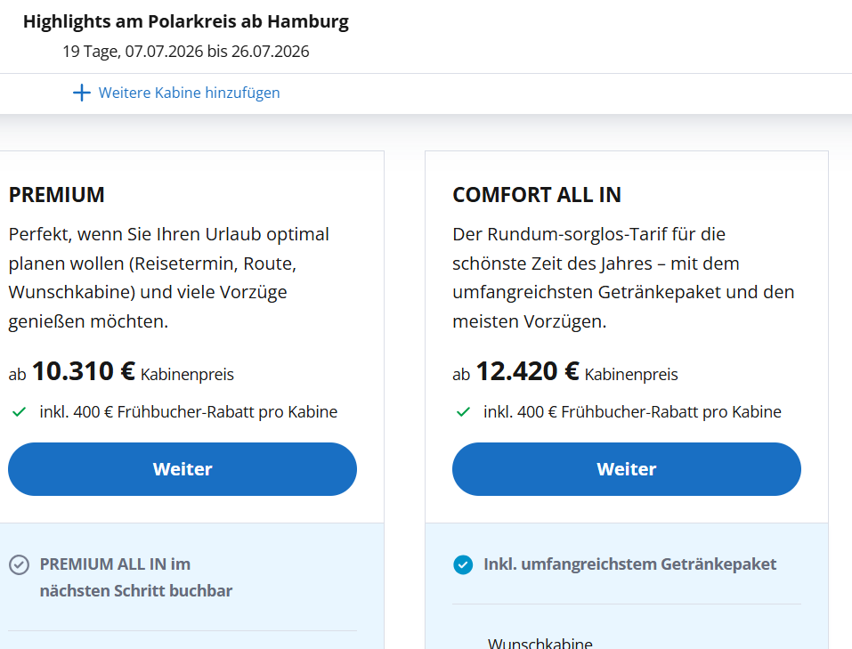 Allerdings weiß ich noch das ich in den Herbstferien 2021 mit meiner Tochter im Vario, im Mittelmeer mit der cosma war. Ai, verandakabine, inklusive Flüge, hat gekostet 2450 Euro. Ich Merk mir (leider) alle Preise . Für dieselbe Leistung müsste ich nun: 3721 Euro bezahlen. Im Tarif „ classic „ Ähm ja, tut mir leid ist nicht drinnen, nicht wenn man alleine dafür aufkommen muss. Der fluganteil hat sich damals für uns beide (hin und zurück ) auf 750 Euro belaufen. Jetzt sind es 1000. aber selbst ohne Flug wäre die Reise immer noch 300 Euro teurer und individuell gebucht landet man auch bei um die 3000 Euro
