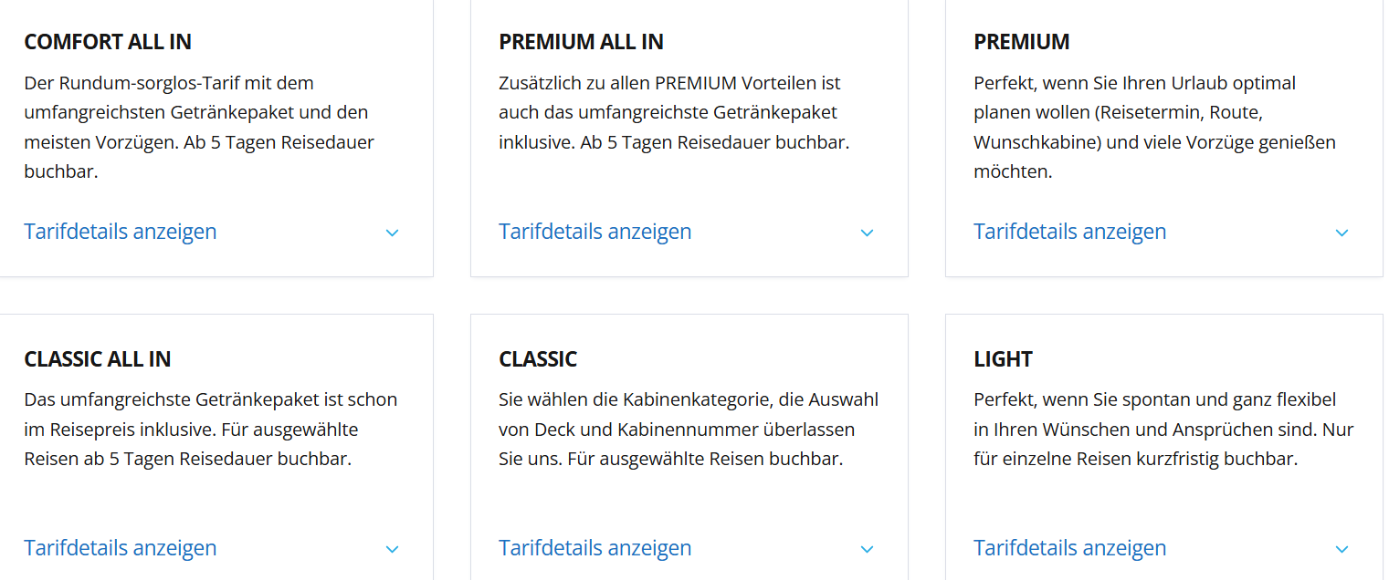Wenn sie clever sind, sind die neuen classic leicht darunter (natürlich nur für den Anfang, weil alle vergleichen werden) oder alternativ classic drüber und der light leicht darunter. Ich denke die meisten werden die weniger Leistungen in light gegenüber Vario eben nicht verstehen. Das Forum bildet ja nur ein Bruchteil der aidagäste ab und ist vergleichsweise sehr gut informiert. Bin gespannt