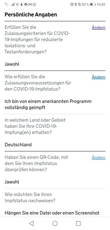 Screenshots der Übersicht (vorher werden persönliche Daten abgefragt), bei Bild 3 erfolgt der Impfnachweis durch hochladen des QR Code (Screenshot oder PDF )