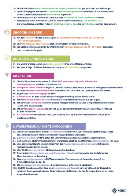 Im Einklang mit dem Umweltschutzprogramm von MSC Cruises, das auf einem tiefen Bekenntnis zu ökologischen Prinzipien basiert, setzt die MSC Grandiosa neue Maßstäbe in puncto Umweltbilanz und verfügt über modernste Umwelttechnologien.