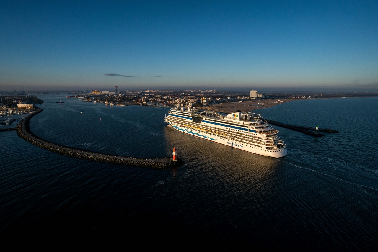 Am Morgen des 13. Oktober 2021 ist das Kreuzfahrtschiff AIDAdiva im Hafen von Warnemünde eingelaufen.