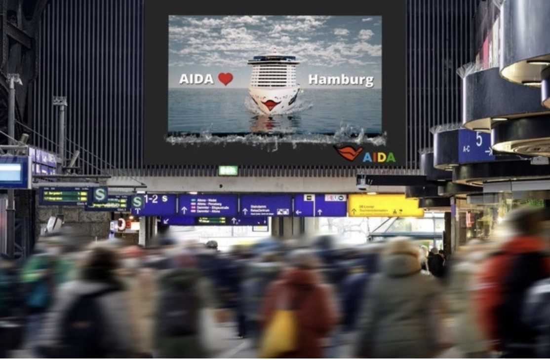 AIDA Cruises holt gemeinsam mit Ströer, dem national bekannten Außenwerbeanbieter, den neuen Trend der dreidimensionalen Kampagnen nach Hamburg. Erstmalig wird auf sogenannten Public Video City Towern eine digitale Außenwerbung mit einem animierten 3D-Motiv präsentiert. Außerdem werden die Public Video Giant Screens am Hamburger Hauptbahnhof gezielt als Highlights eingesetzt.